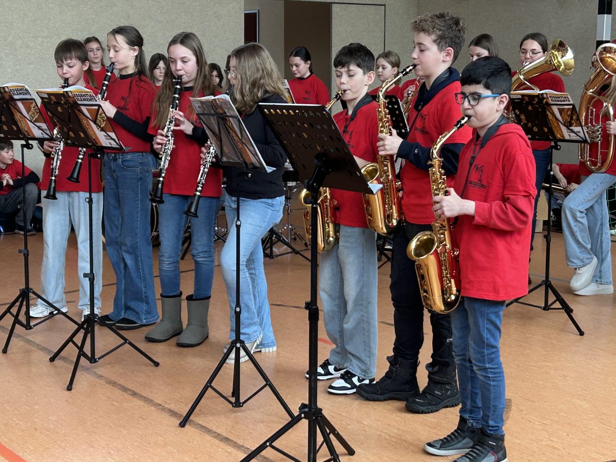 Mit einem kleinen Ständchen brachten die Bläserklassen musikalische Abwechslung in den Schulalltag der Grundschüler. Gespielt wurden bekannte Melodien, die sofort für Aufmerksamkeit und gute Stimmung sorgten. Zwischendurch stellten die jungen Musiker ihre Instrumente vor und erklärten anschaulich, wie das Bläserklassenkonzept an unserem Gymnasium funktioniert.