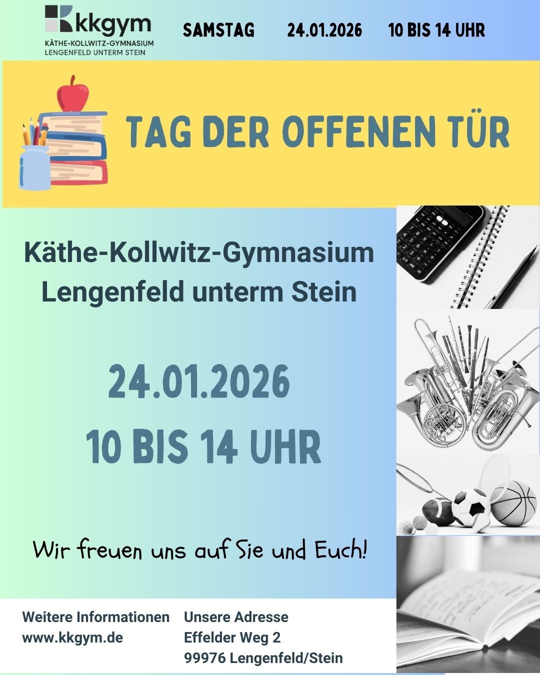 Liebe Schülerinnen und Schüler,liebe Eltern und Interessierte, wir laden Sie und Euch herzlich ein, unser Käthe-Kollwitz-Gymnasium Lengenfeld unterm Stein kennenzulernen! Am Samstag, den 24. Januar 2026 […]