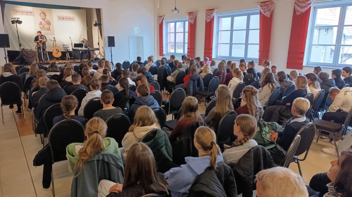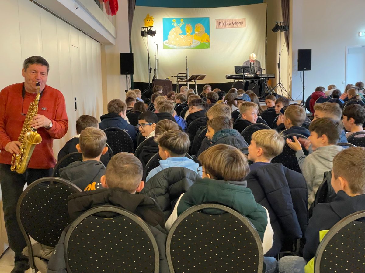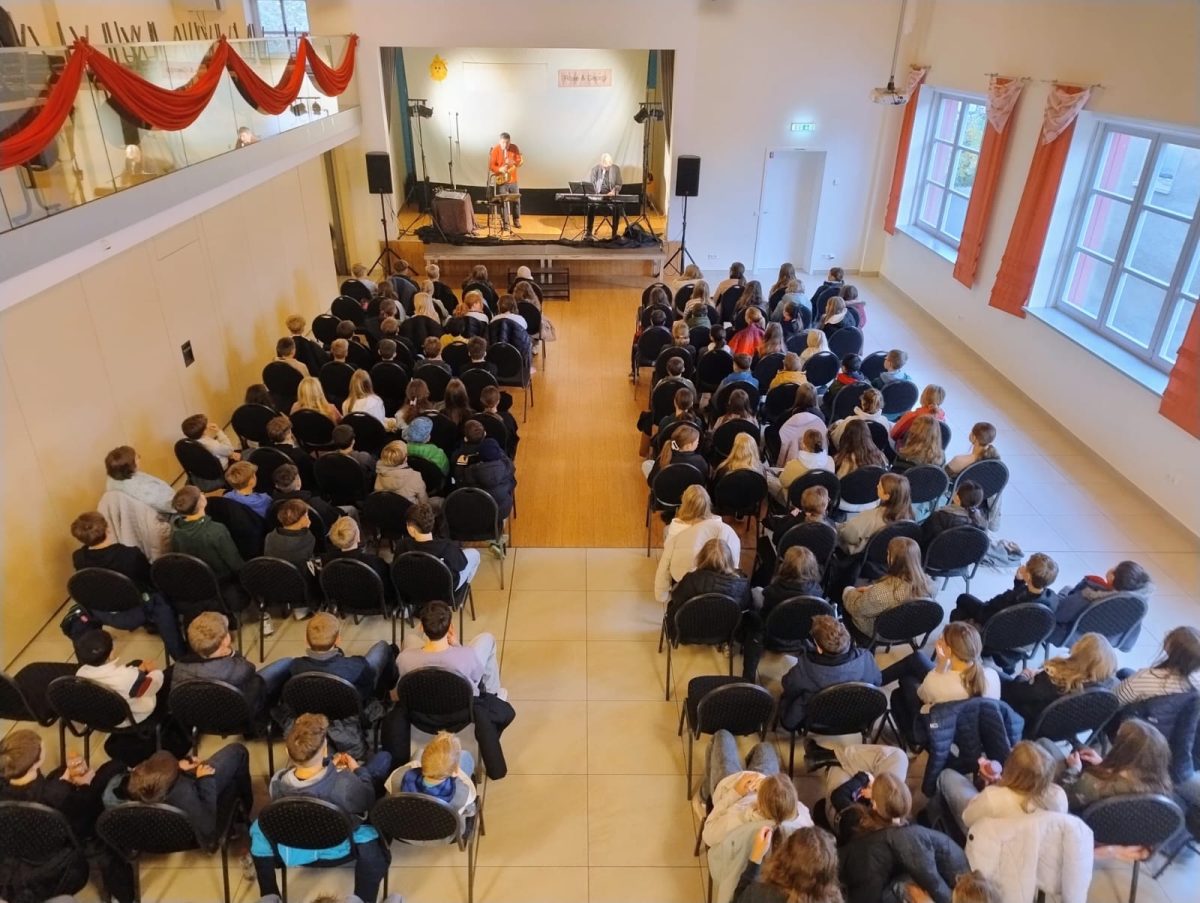 An zwei besonderen Tagen durften unsere Schülerinnen und Schüler der Klassen 5 bis 10 in die faszinierende Welt der Literatur und Musik eintauchen. Das Künstlerduo Rose und Georgi gestaltete ein abwechslungsreiches, lebendiges Programm, das Themen des Deutschunterrichts auf einzigartige Weise erlebbar machte.