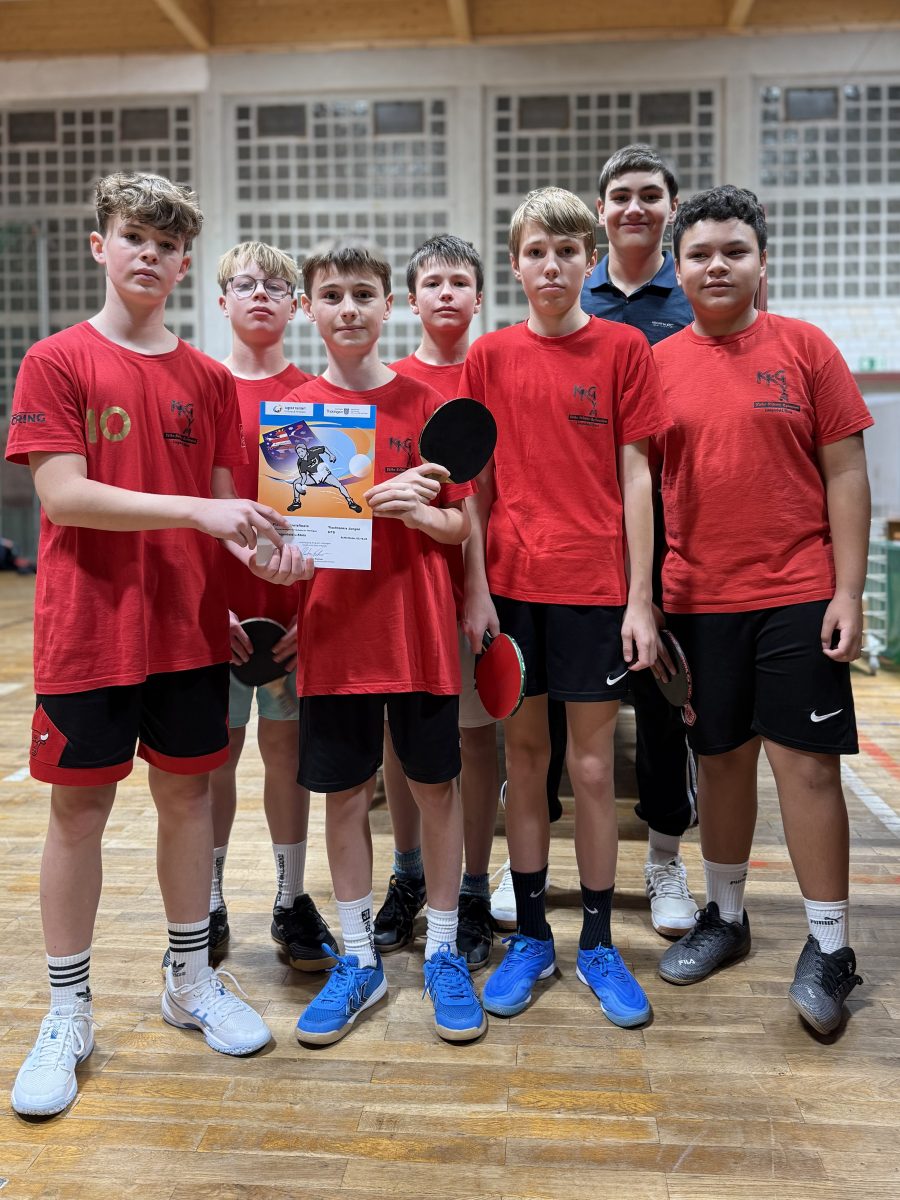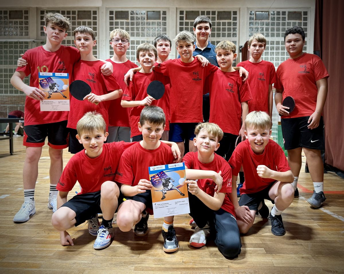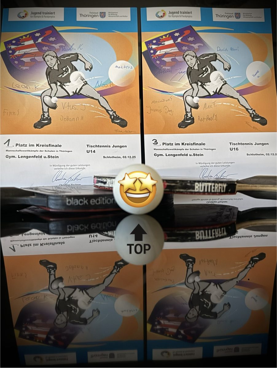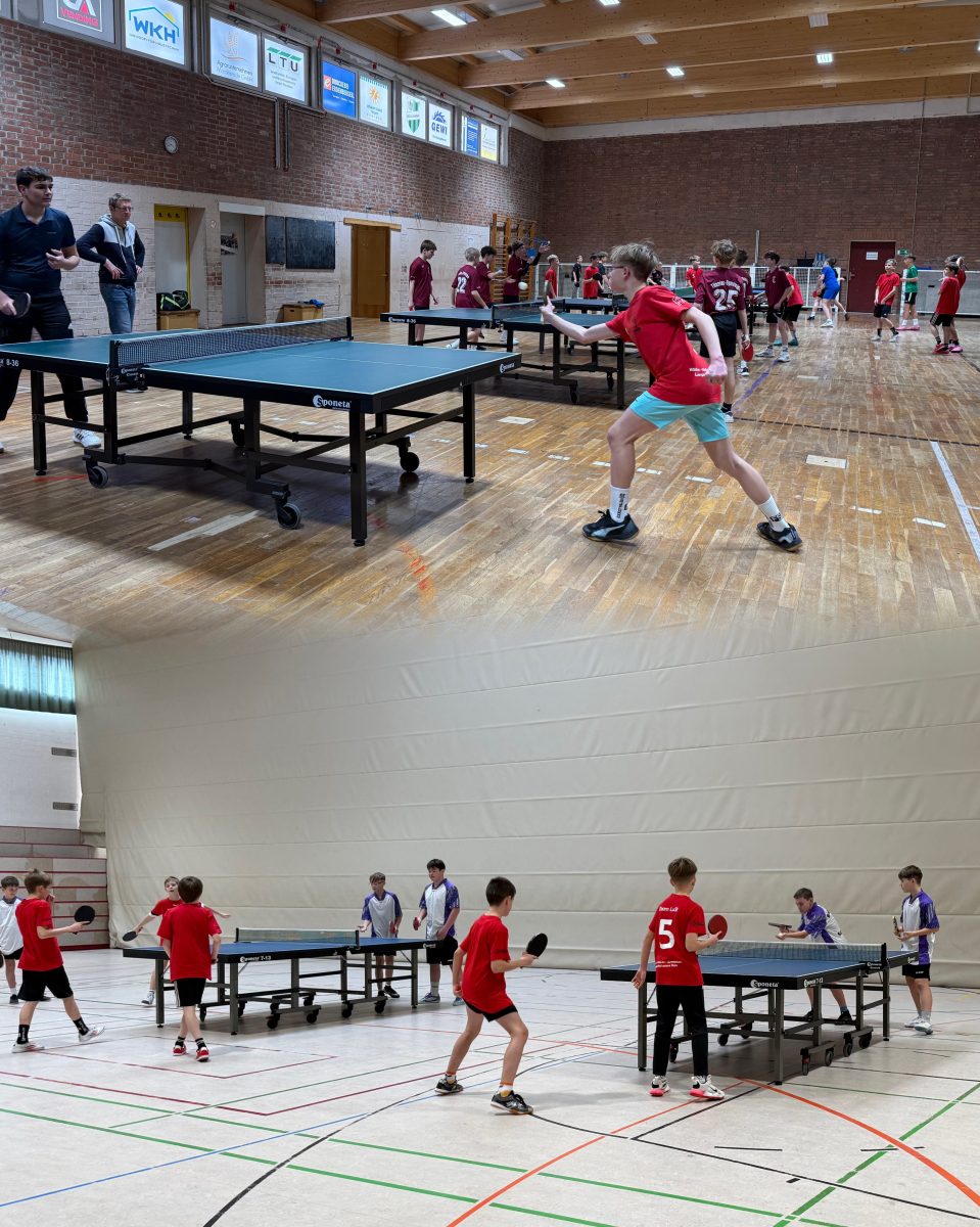 Am 2. Dezember nahm das Käthe-Kollwitz-Gymnasium erstmals mit zwei Mannschaften – einer U14 und einer U16 – am Kreisfinale Tischtennis in Schlotheim teil. Für unsere Schülerinnen und Schüler war es ein rundum gelungener Wettkampf. In der großen Halle boten zahlreiche Tische vielfältige Möglichkeiten, sich auszuprobieren, Erfahrungen zu sammeln und sportlich über sich hinauszuwachsen.