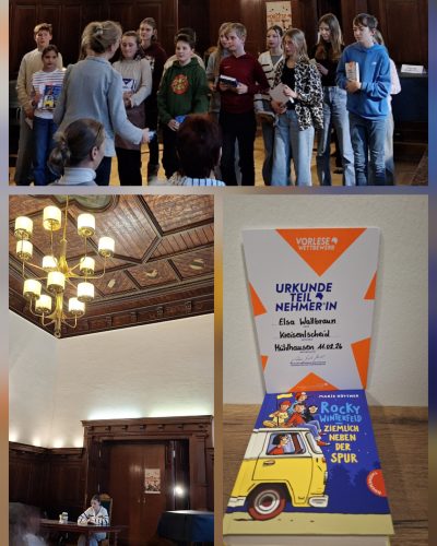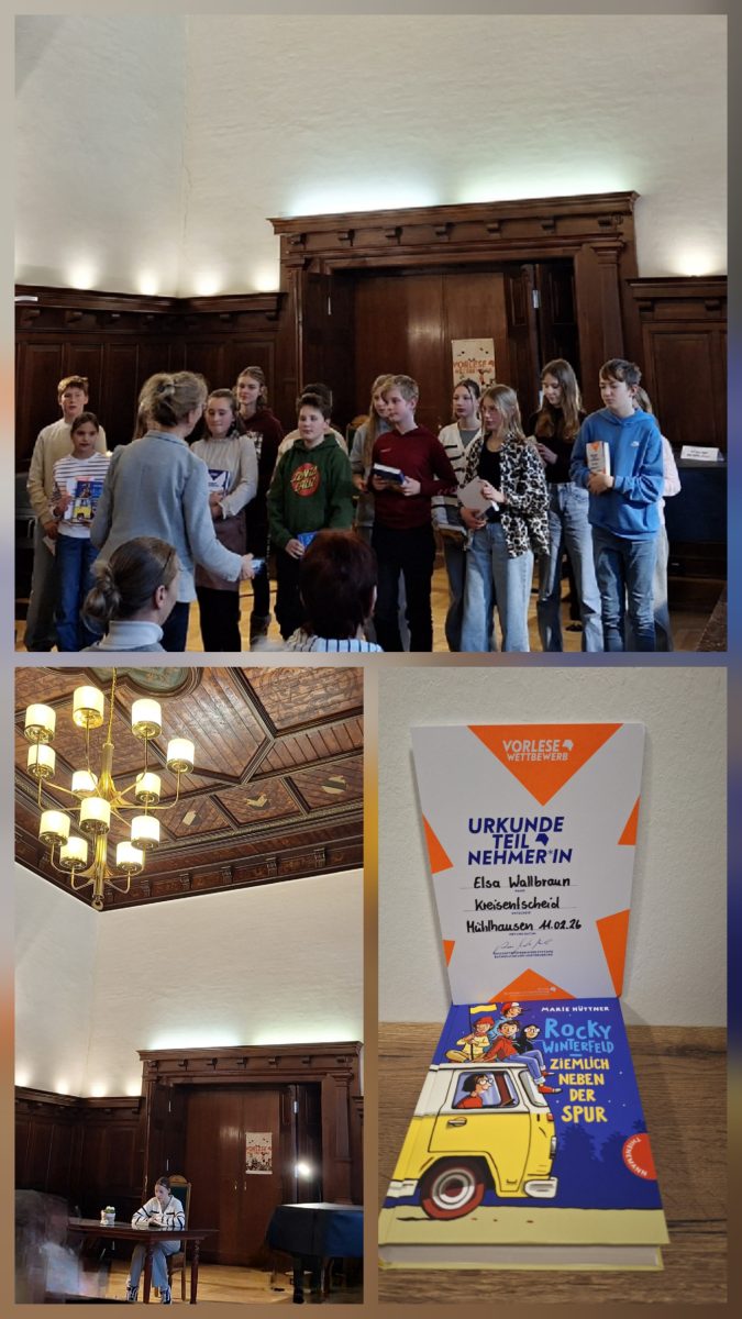 Elsa Wallbraun aus der 6c hat den Vorlesewettbewerb in Mühlhausen am 11.02.2026 souverän gemeistert. Insgesamt nahmen 15 Schülerinnen und Schüler teil und präsentierten ihre ausgewählten Bücher vor einem beeindruckenden Publikum von mindestens 50 Personen – eine Atmosphäre voller Spannung und Aufregung.