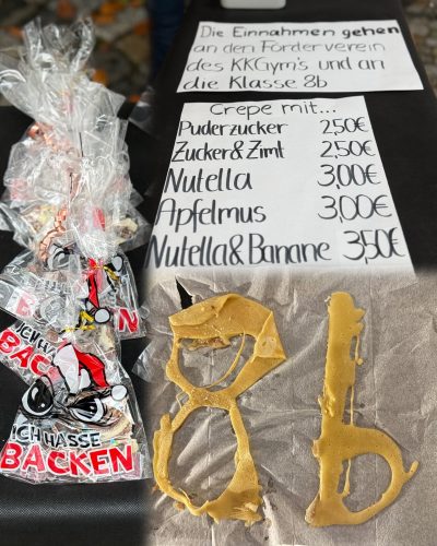 Der Einsatz der Klasse lohnte sich doppelt: Nicht nur konnten zahlreiche Besucherinnen und Besucher mit köstlichen Naschereien verwöhnt werden – der Erlös kommt außerdem dem Förderverein des Käthe-Kollwitz-Gymnasiums zugute. Dieser unterstützt wichtige Projekte und Anschaffungen, von denen die gesamte Schulgemeinschaft profitiert.