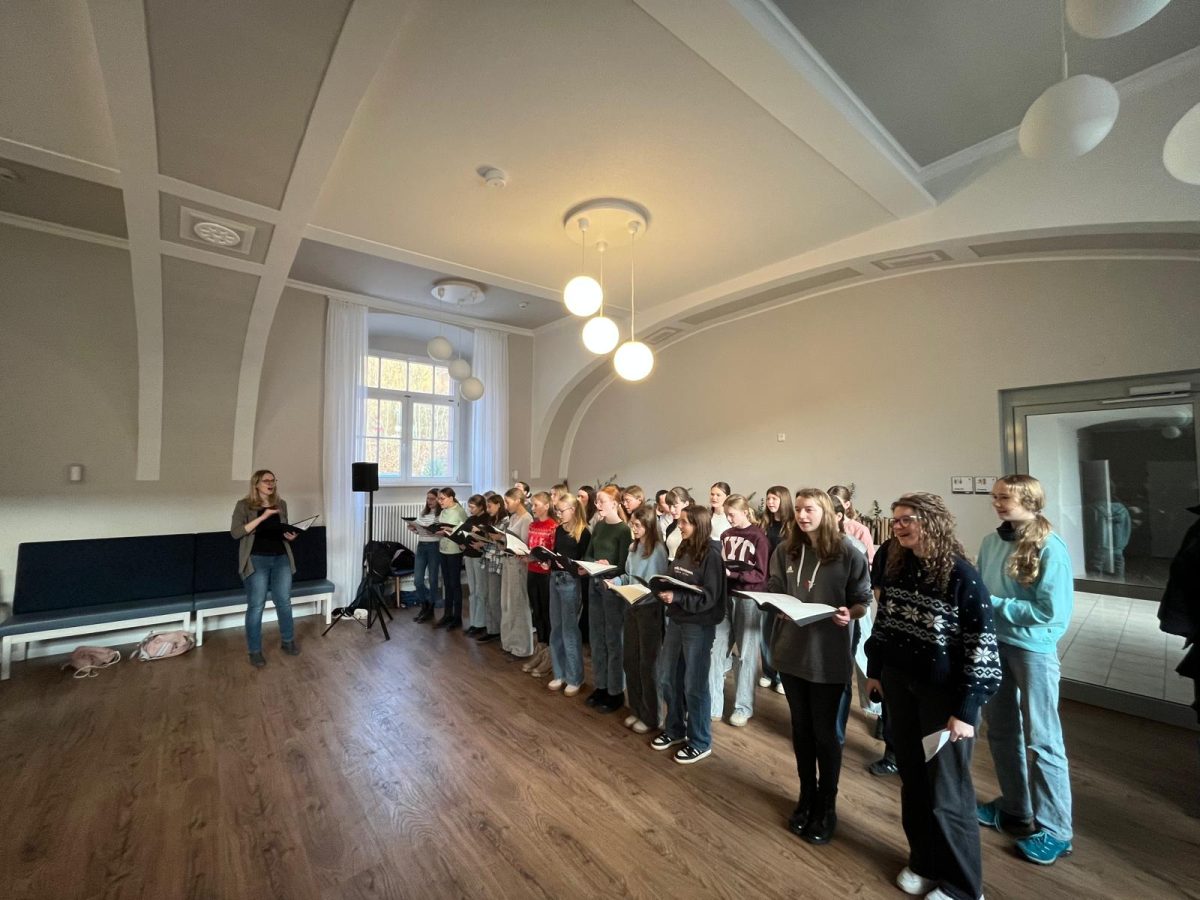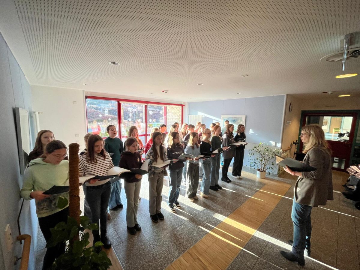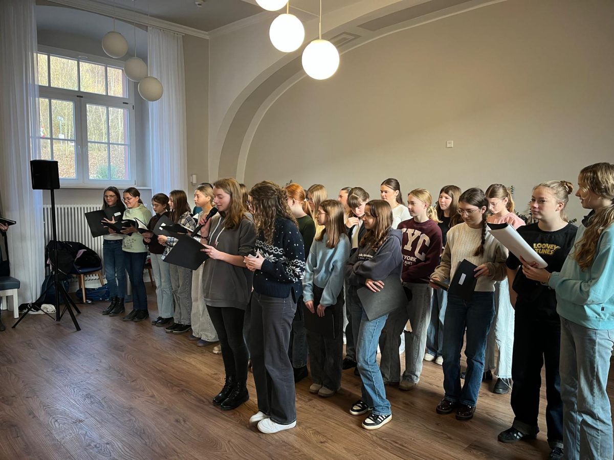 Der Schulchor war kurz vor den Weihnachtsferien wieder in Lengenfeld/Stein unterwegs und sorgte mit seinem Gesang für festliche Stimmung. Die jungen Sängerinnen besuchten die Fachklinik für Geriatrie St. Elisabeth sowie das Wohn- und Pflegezentrum Schloss Bischofstein, um Patienten und Bewohnern eine musikalische Freude zu bereiten.