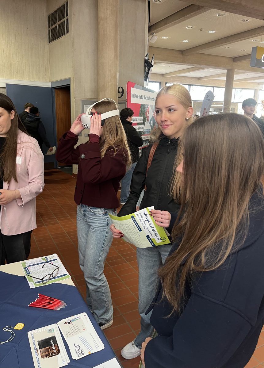Neben den Vorlesungen boten zahlreiche Informationsstände Gelegenheit, sich ausführlich über Studiengänge und das Studium allgemein zu informieren. Themen wie Zulassungsbedingungen, Studienkosten und Fördermöglichkeiten standen dabei im Mittelpunkt. Viele Schülerinnen und Schüler nutzten die Chance, direkt mit Studierenden und Mitarbeitenden der Universität ins Gespräch zu kommen und persönliche Fragen zu stellen.