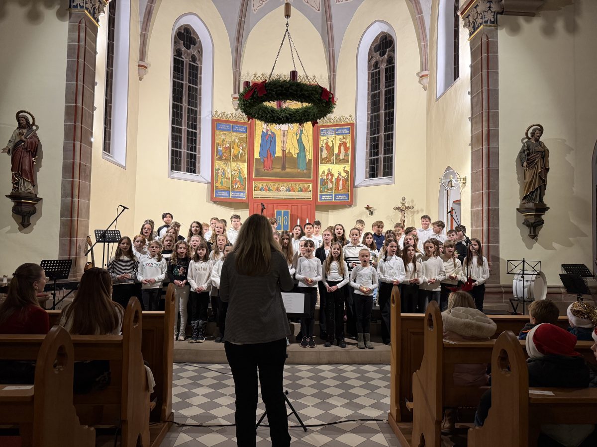 Am 2. Dezember erfüllten festliche Melodien die Kirche in Lengenfeld/Stein beim traditionellen Weihnachtskonzert des Käthe-Kollwitz-Gymnasiums. Unterstützt wurde das Gymnasium von der dritten Klasse der Grundschule, die wie alle Beteiligten seit den Herbstferien fleißig geprobt hatte.