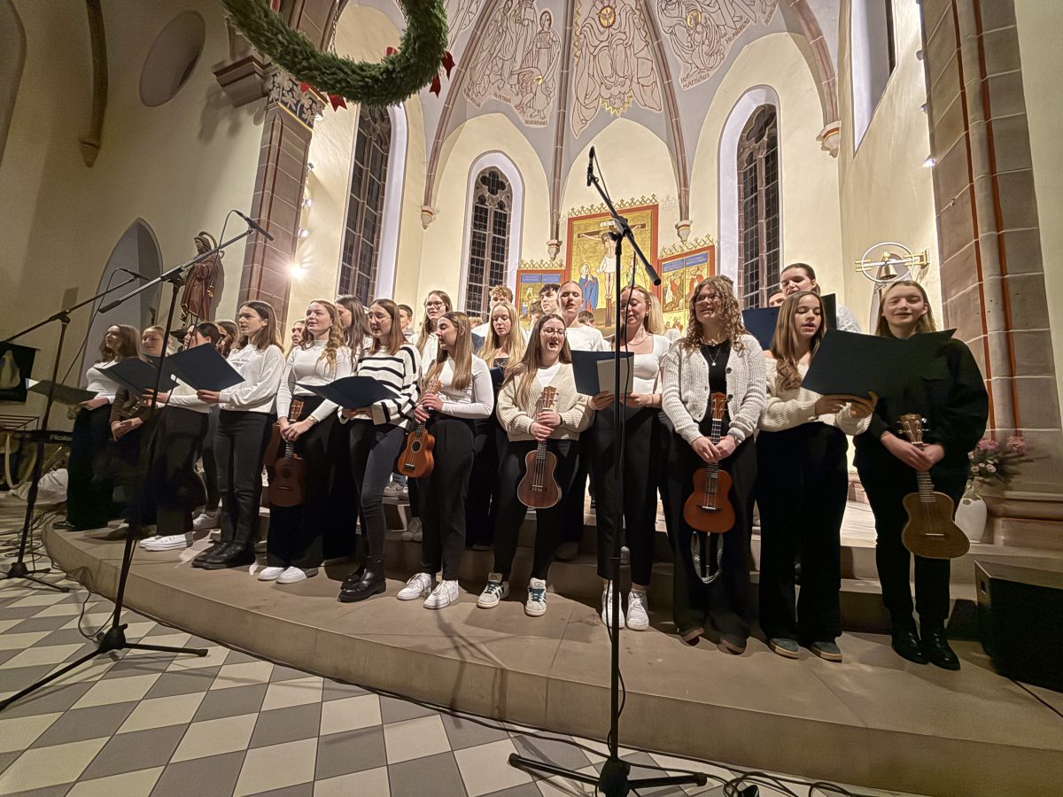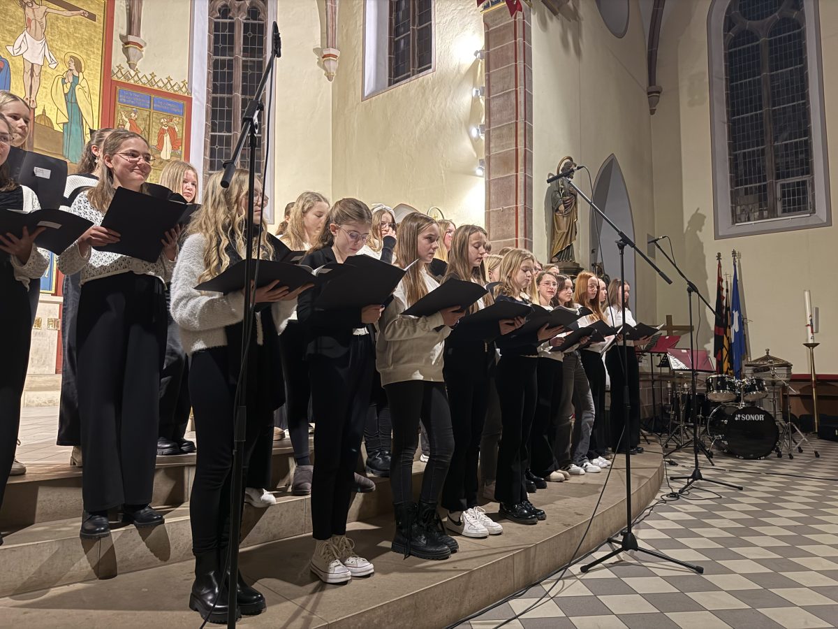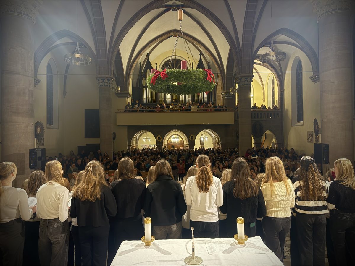 Zum Abschluss sangen alle rund 170 Mitwirkenden zusammen mit dem Publikum „Merry Christmas Everyone“ – ein Moment, der die generationsübergreifende Kraft der Musik spürbar machte. Ein großer Dank ging an die Kirchengemeinde für die Nutzung der Kirche. Beim anschließenden Ausklang luden die Zwölftklässler zu Kinderpunsch und Glühwein ein und stimmten so gemütlich in die Adventszeit ein.