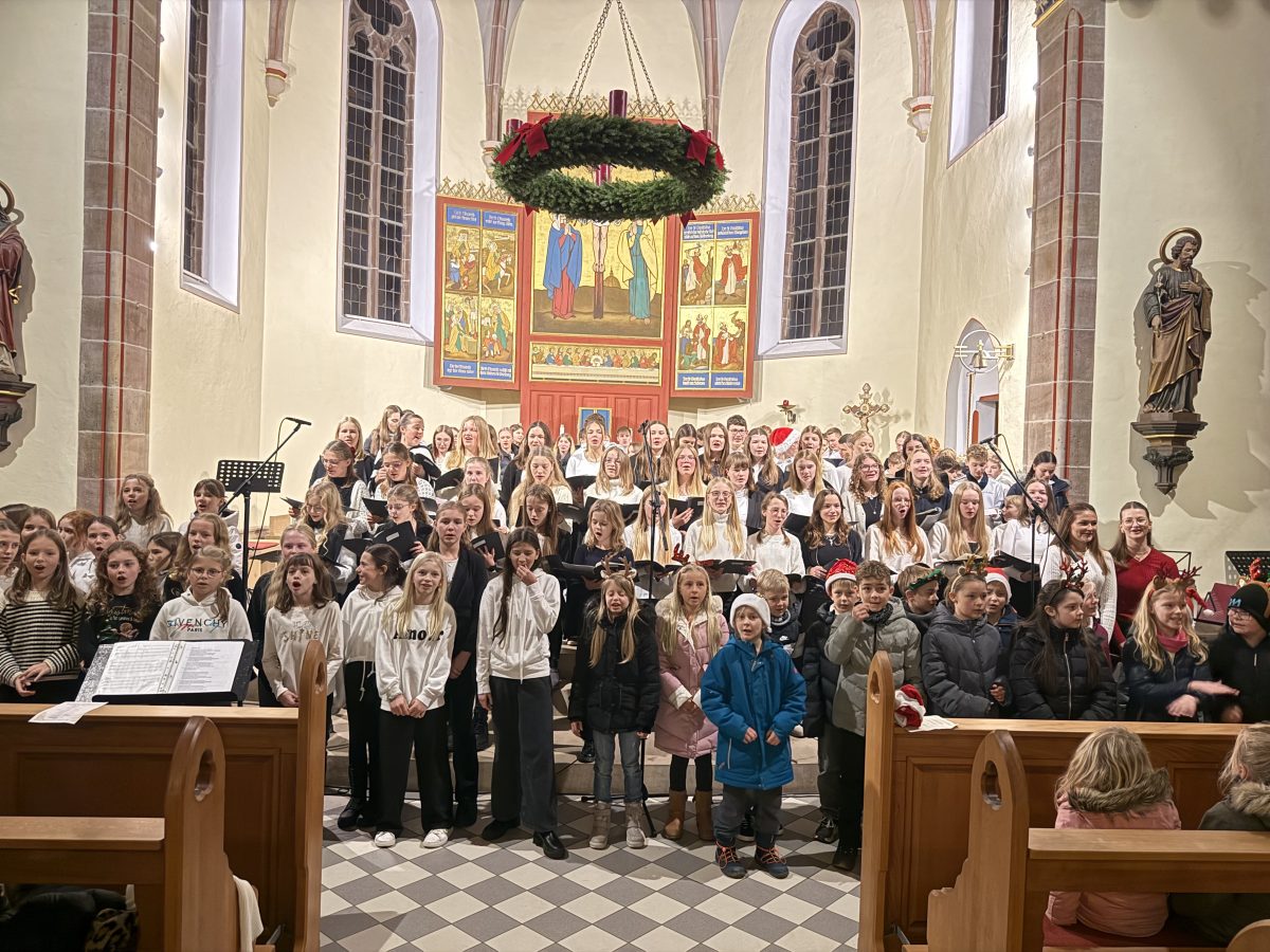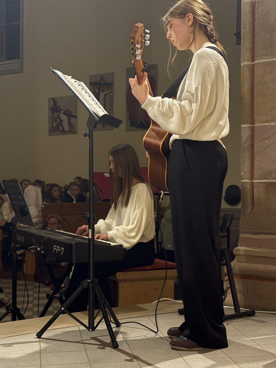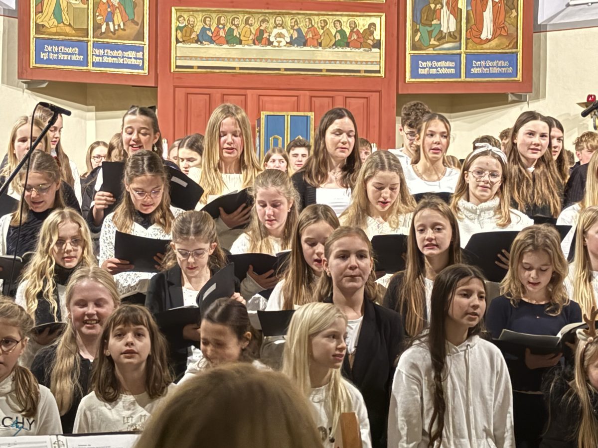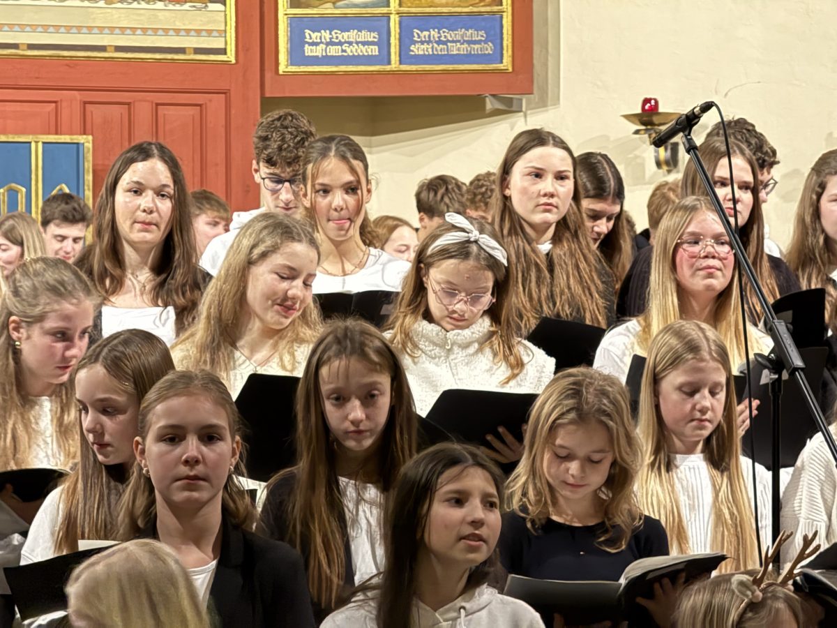 Zum Abschluss sangen alle rund 170 Mitwirkenden zusammen mit dem Publikum „Merry Christmas Everyone“ – ein Moment, der die generationsübergreifende Kraft der Musik spürbar machte. Ein großer Dank ging an die Kirchengemeinde für die Nutzung der Kirche. Beim anschließenden Ausklang luden die Zwölftklässler zu Kinderpunsch und Glühwein ein und stimmten so gemütlich in die Adventszeit ein.